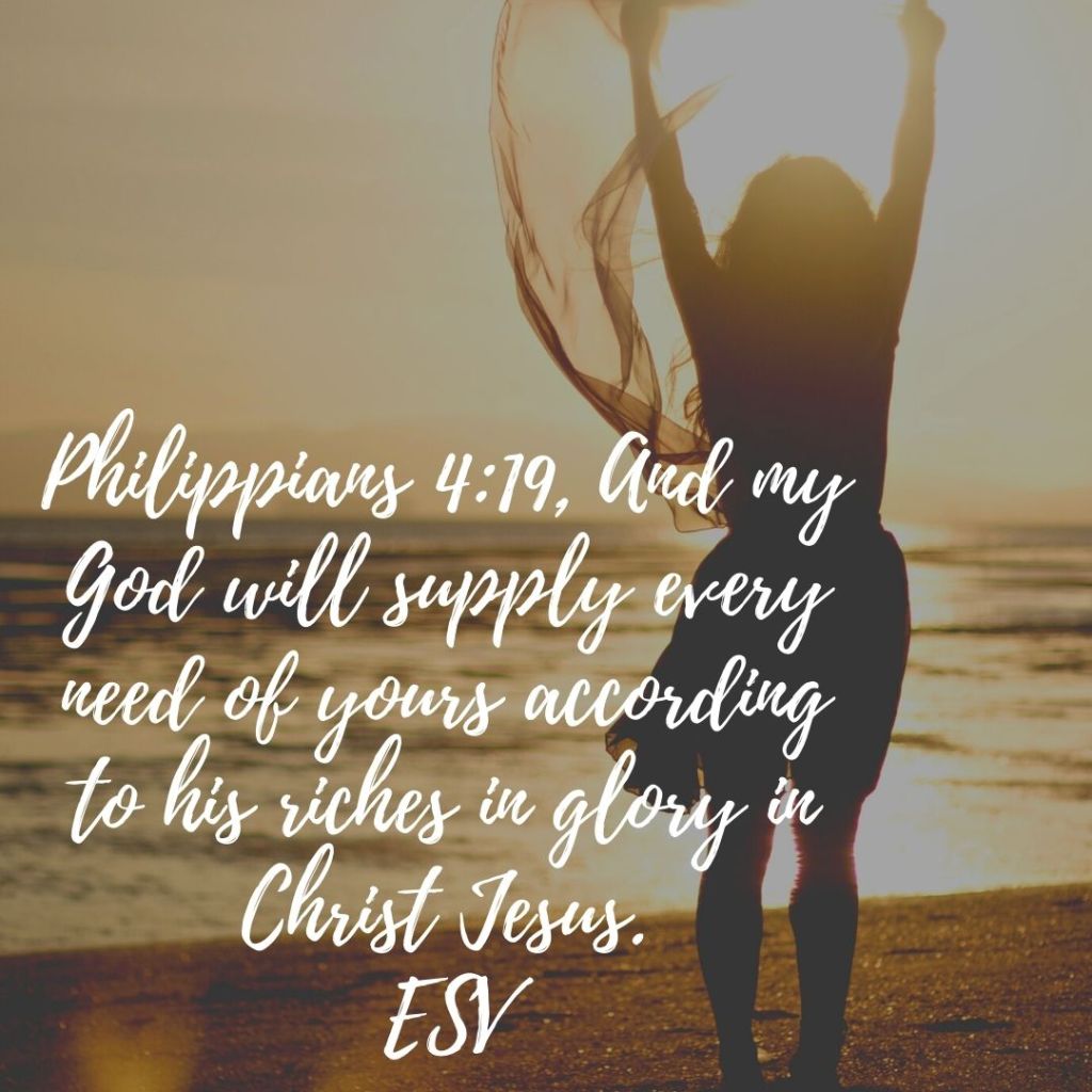 Philippians 4:19, ESV And my God will supply every need of yours according to his riches in glory in Christ Jesus.
